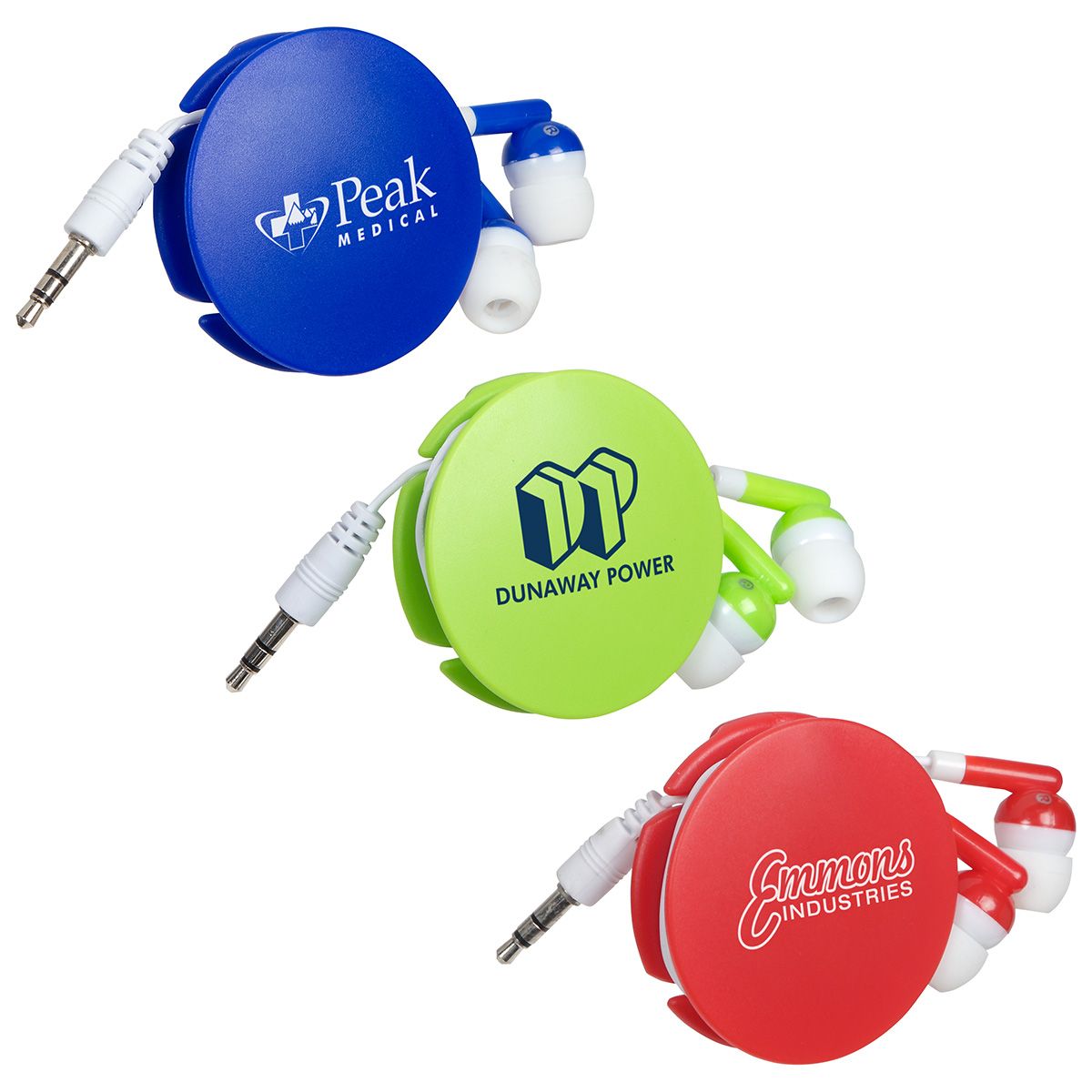 These little earbuds are perfect for the price-conscious! Great for virtual tradeshow swag bags, new-employee welcome kits, and more. These earbuds come with a handy storage case that keeps the cords from tangling. The cord extends up to 48 inches with a clip on the back.