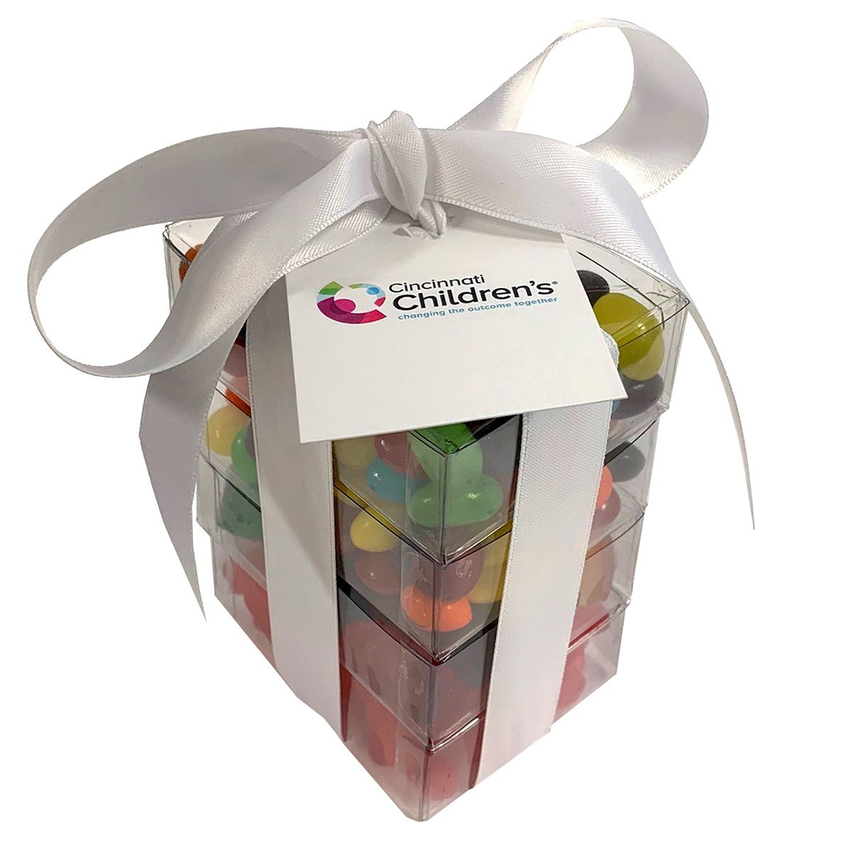 Stack em’ and share em’ with new customers! These stackable candy-filled containers allow you to send customized sugary snacks to anyone who has recently signed on to use your services. Add a colored bow and logoed note for that special touch.